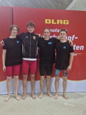 Hiermit erhaltet ihr die heiß ersehnten Ergebnisse unserer AK 17/18 Schwimmer. Bevor wir uns den herausragenden Leistungen von Kiran, Jonas, Moritz und Justin widmen, möchte wir euch noch einmal kurz daran erinnern, wie bedeutend dieser Wettkampf ist. Die 52. Deutschen Mehrkampf-Meisterschaften (DMM), organisiert vom DLRG Bundesverband, zogen rund 1200 Teilnehmer:innen an. Diese waren auf 18 Landesverbände und etwa 90 örtliche Gliederungen verteilt. Das Ziel des Wettbewerbs war es, die besten Schwimmer:innen in ihren jeweiligen Altersklassen aus ganz Deutschland zu ermitteln. Die Teilnahme an diesem prestigeträchtigen Event ist nicht jedem vergönnt, sondern erfordert eine Qualifikation durch andere offizielle Wettbewerbe. Durch ihren 1. Platz bei den Landesmeisterschaften im Frühjahr hatten sich die vier Jungs direkt für die DMM qualifiziert. Auch Kiran sicherte sich durch seinen 1. Platz und den damit verbundenen Landesmeistertitel im Einzel einen Startplatz. Nun zu den hervorragenden Ergebnissen: Mannschaft: Nach absolvieren der Disziplinen 4x50m Tettungs-, Gurtretter-, und Hindernissstaffel sowie der 4x25m Puppenstaffel erreichten Moritz, Justin, Kiran und Jonas einen beachtlichen 15. Platz (von 24) in der Mannschaftswertung. Einzel: Von insgesamt 32 Startern belegte Kiran in seiner Altersklasse 17/18 einen starken 19. Platz! Er schwamm die folgenden Disziplinen: - 100m Lifesaver - 50m Retten - 100m Retten mit Flossen geschwommen in persönlicher Bestzeit 0:52,72 - 100m kombinierte Rettungsübung
