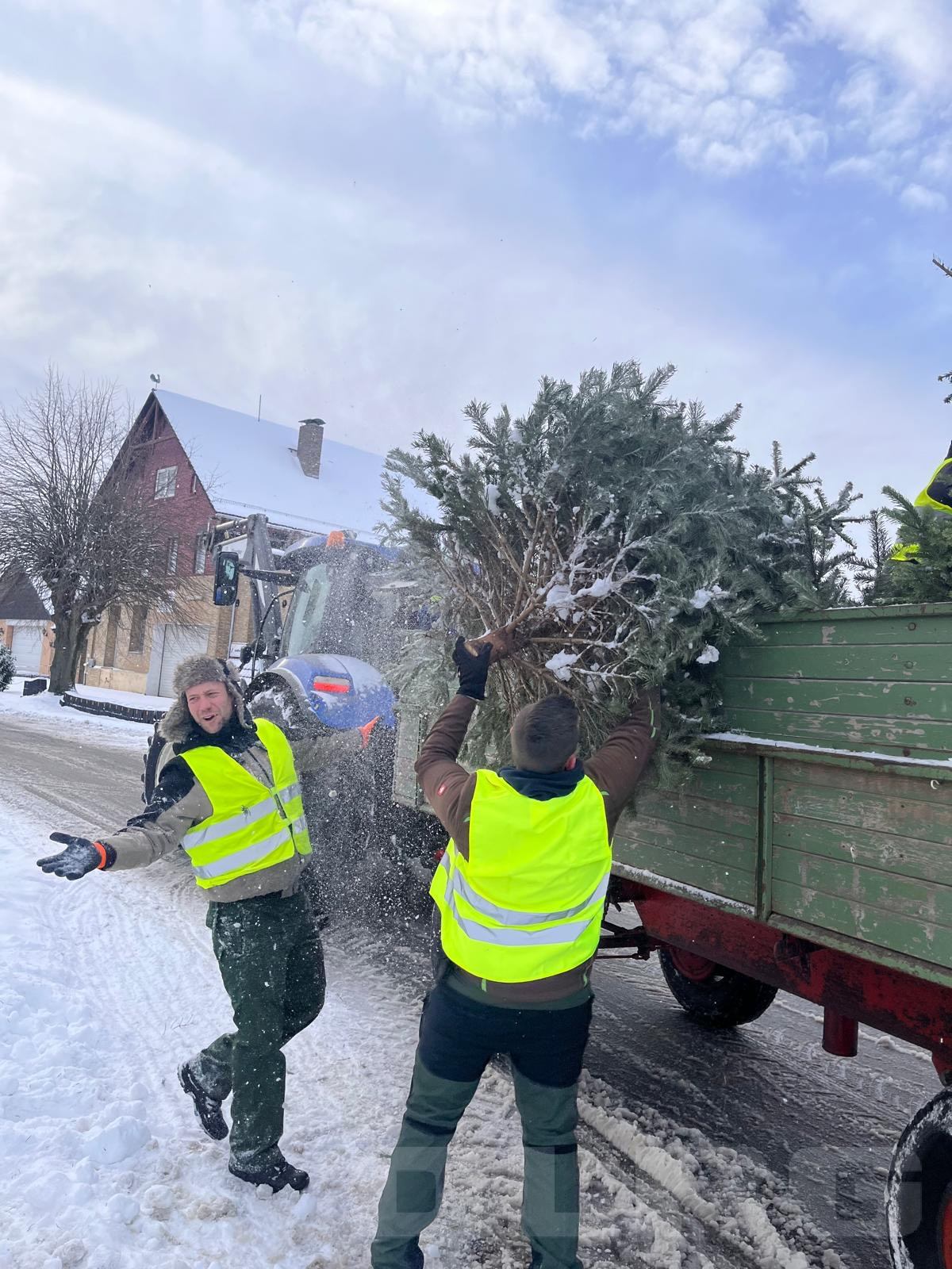 Glücklicherweise hatte das Wetter ein Einsehen und während es am Vormittag noch schneite, konnten wir die Tannenbäume bei herrlichem Sonnenschein einsammeln.